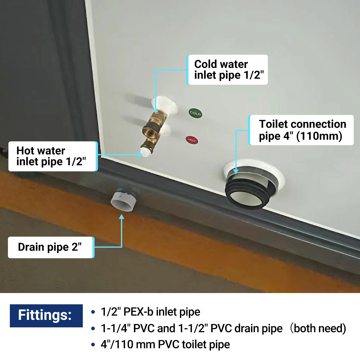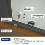• Plumbing: Pre-configured connections for kitchen and bathroom