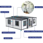 The expandable design offers flexibility for customization, allowing homeowners to adapt the layout to meet specific needs such as additional storage, expanded living areas, or integrated outdoor spaces. Whether deployed in urban, suburban, or rural settings, this prefab home prioritizes efficient use of space, structural integrity, and ease of installation.