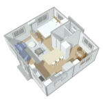 The 19ft x 20ft base provides a balanced living area that maximizes utility without excessive land use. The layout is ideal for small families, couples, or individuals seeking efficient yet comfortable home space.