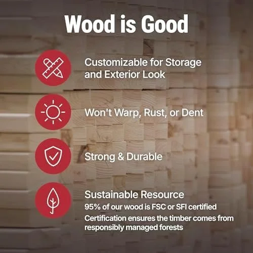 Delivered as a flat pack with pre-cut lumber and hardware, this shed is designed for DIY assembly. Clear instructions and labeled components make setup accessible for most homeowners with basic tools.