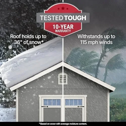 The 10×12 size provides abundant interior space, helping homeowners clear clutter from garages, basements, and outdoor living spaces.