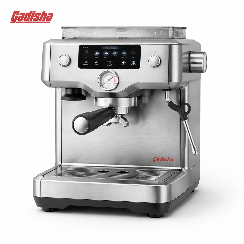 The Gadisha Semi-Automatic Espresso Machine combines professional-grade construction with intuitive digital controls to elevate the home coffee experience. Its high-pressure pump system ensures optimal extraction, while the integrated pressure gauge helps users monitor brewing performance in real time.